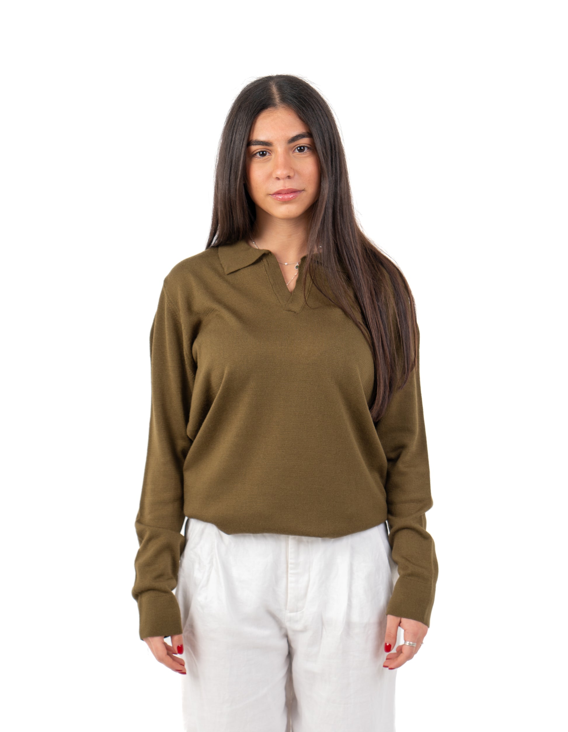 Rustic Olive Charm: Women's Buttonless Knitwear